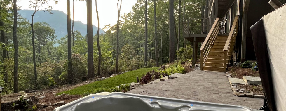 This past week a pivotal part of our landscape renovation project was completed providing a tranquil place to take in two mountain views from one vantage point, namely, Whiteside and Little Terrapin Mountains. Perched on a mountain ridge, our location provides terrific panoramic mountain views. With the new patio installation you can now sit and sip your coffee, soak in the jacuzzi, or soak in sunrays on loungers overlooking Whiteside Mountain where the view changes minute-by-minute based on whatever Mother Nature provides.